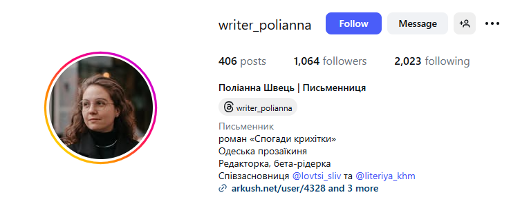 Під час зустрічі Поліанна Швець (літературний псевдонім Ганни Чернеги)представила свій творчий доробок і розповіла про діяльність літературної спільноти «Ловці слів». Студенти ознайомилися з колективними збірками, до яких увійшли тексти авторки, зокрема «Птахвіль» та «Спектроліт», а також дізналися про ідею створення спільноти однодумців, об’єднаних любов’ю до слова й літературного діалогу.