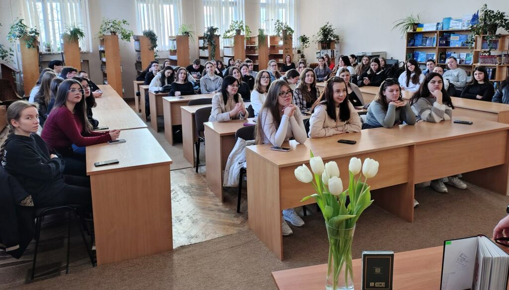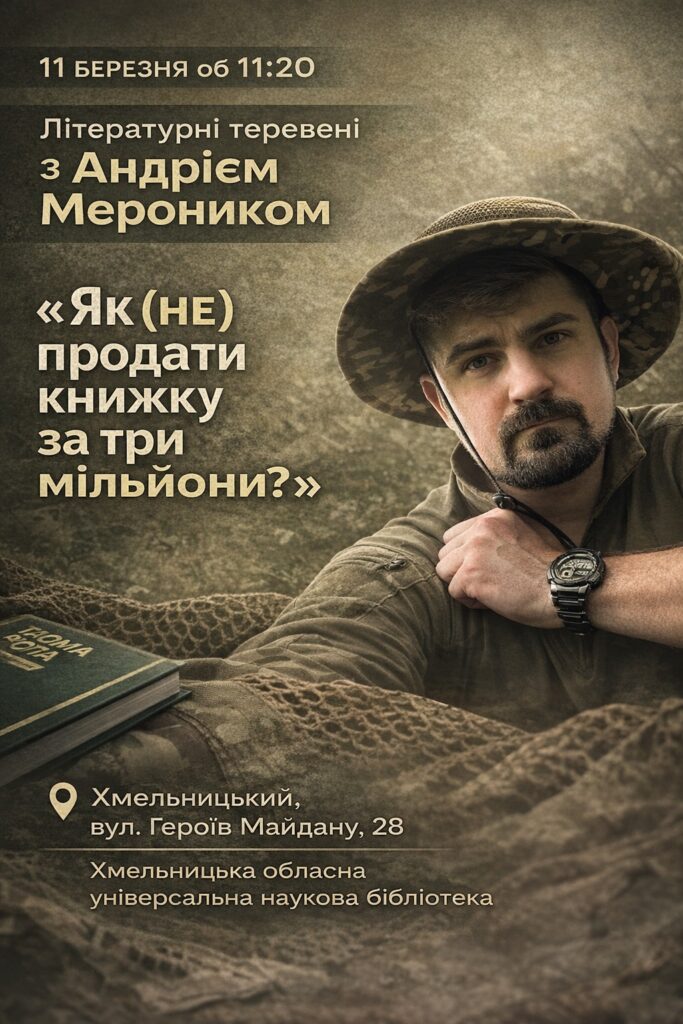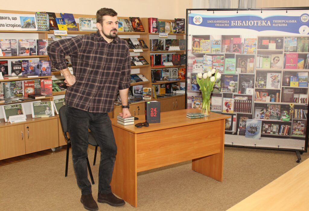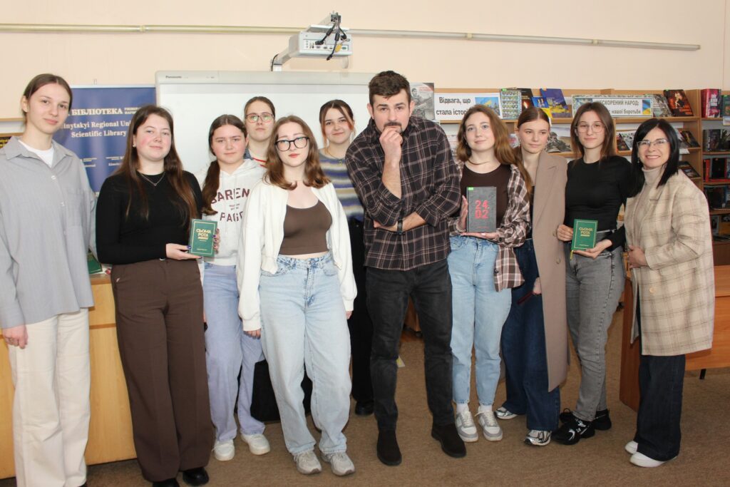 11 березня в Хмельницькій обласній універсальній науковій бібліотеці відбулася зустріч з Андрієм Мероником — сучасним українським письменником, який пише про війну. У межах вивчення дисциплін “Основи соціолінгвістики” та “Сучасна українська літературна мова. Морфеміка та словотвір” захід відвідали бакалаври кафедри української філології (гр. СОУ-24, СОУА-24 та ФУМ-24, викладач — Марія Гавриш).